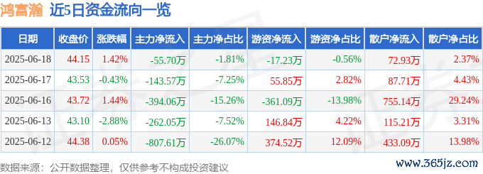本站消息,截至2025年6月18日收盘金猪配资,鸿富瀚(301086)报收于44.15元,上涨1.42%,换手率1.48%,成交量7015.0手,成交额3071.65万元。